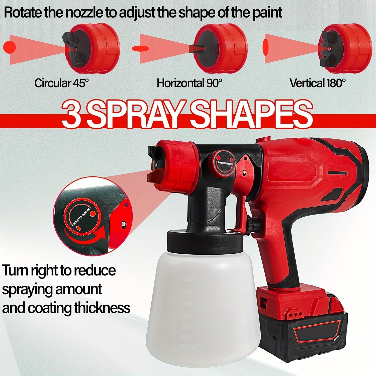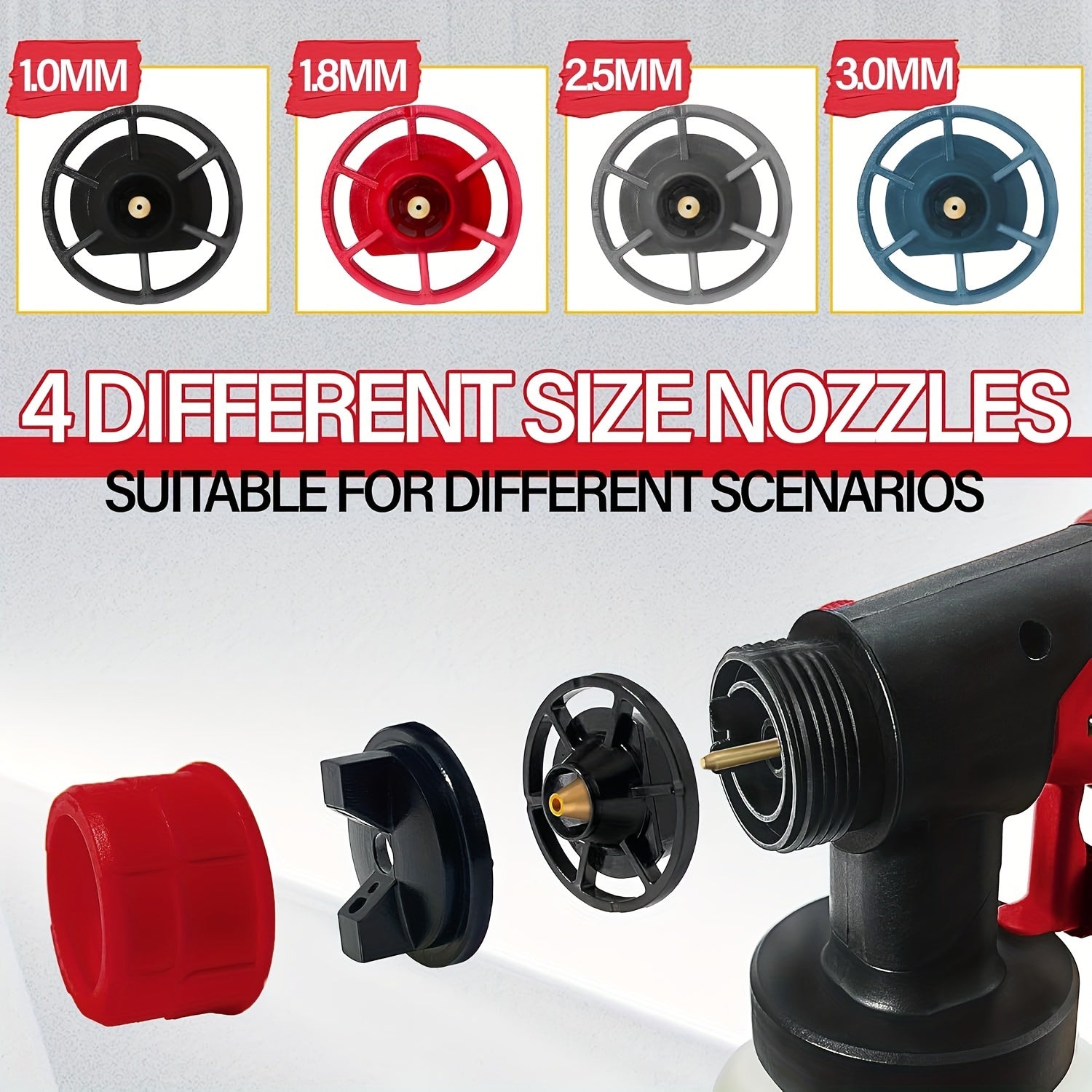4-Nozzle Cordless Paint Sprayer Kit - Compatible with Milwaukee M18 18V Battery, Airless Electric HVLP Spray Gun for House Painting, Home Interior and Exterior, Wood, Walls, Furniture, Fence, and Door - Tool Only, Battery Not