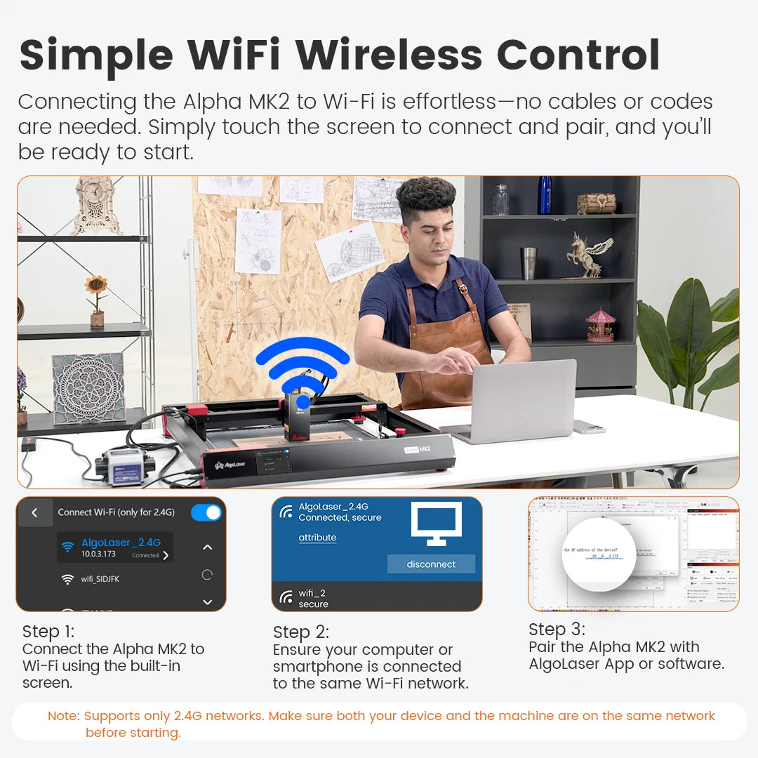 Software: LightBurn, LaserGRBL, AlgoLaser APP